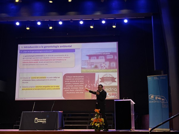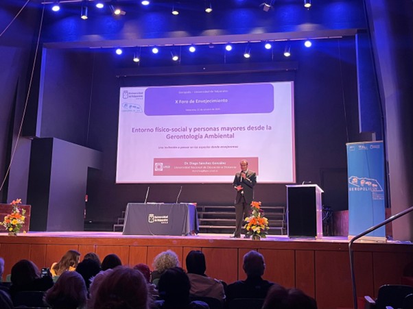 Por Monserrat Chodil Soto.- En el marco de la XI edición del Foro Internacional de Envejecimiento, organizado por el Centro Gerópolis de la Universidad de Valparaíso, el académico español Dr. Diego Sánchez, de la Universidad Nacional de Educación a Distancia (UNED), dictó la charla “Entorno físico-social y personas mayores desde la Gerontología Ambiental”. Su presentación invitó a reflexionar sobre cómo los espacios en los que habitamos condicionan la calidad de nuestras vidas y formas de envejecer.