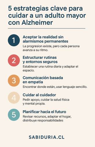 Vivir con un adulto mayor que padece Alzheimer requiere construir una rutina estructurada, comprensiva y emocionalmente segura. Entre las principales recomendaciones entregadas por especialistas destacan: